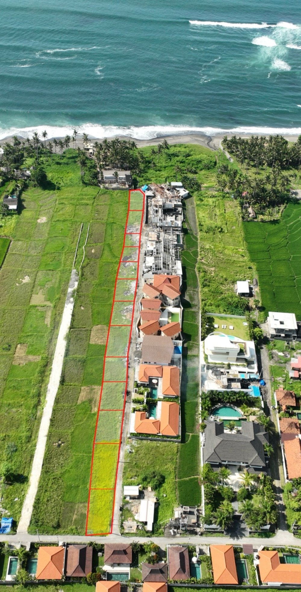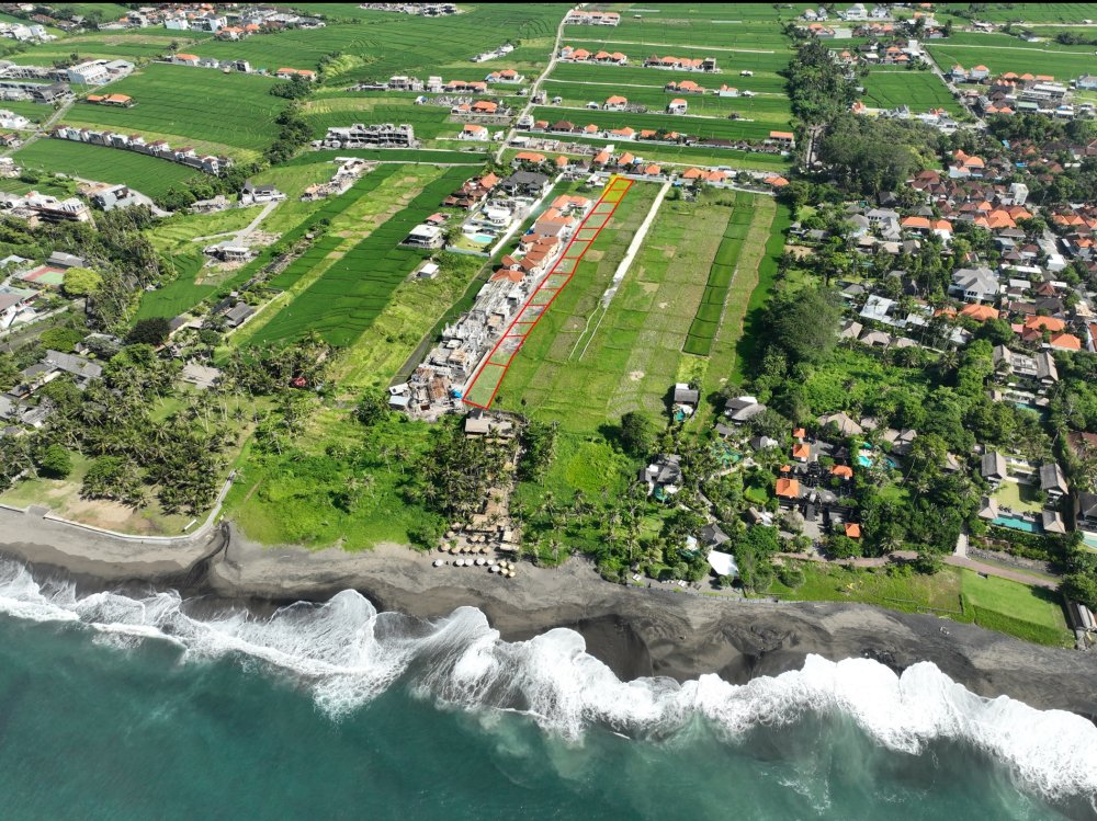 Situated on the black-sand coastline of Seseh (NE of Canggu), this beachfront land strip is around the corner from boutique cafés, yoga/spa at UDARA Bali and laid-back beach warungs. Quiet, emerging area with sea views, ideal for villa or rental build.