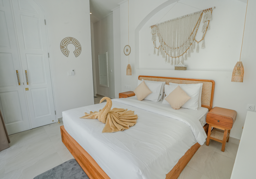 Táto plne zariadená 3-spálňová vila ponúka otvorené obytné priestory, súkromný bazén obklopený tropickou zeleňou a harmonické spojenie tropického a elegantného dizajnu. Každá spálňa má vlastnú kúpeľňu a výhľad na bazén, zatiaľ čo priestranná kuchyňa a obývací priestor sú ideálne na dlhé raňajky, pomalé popoludnia aj útulné večery.