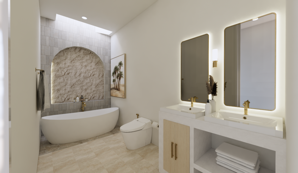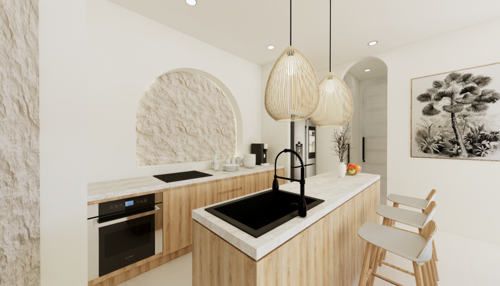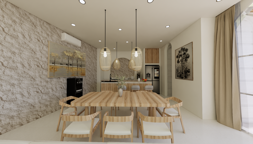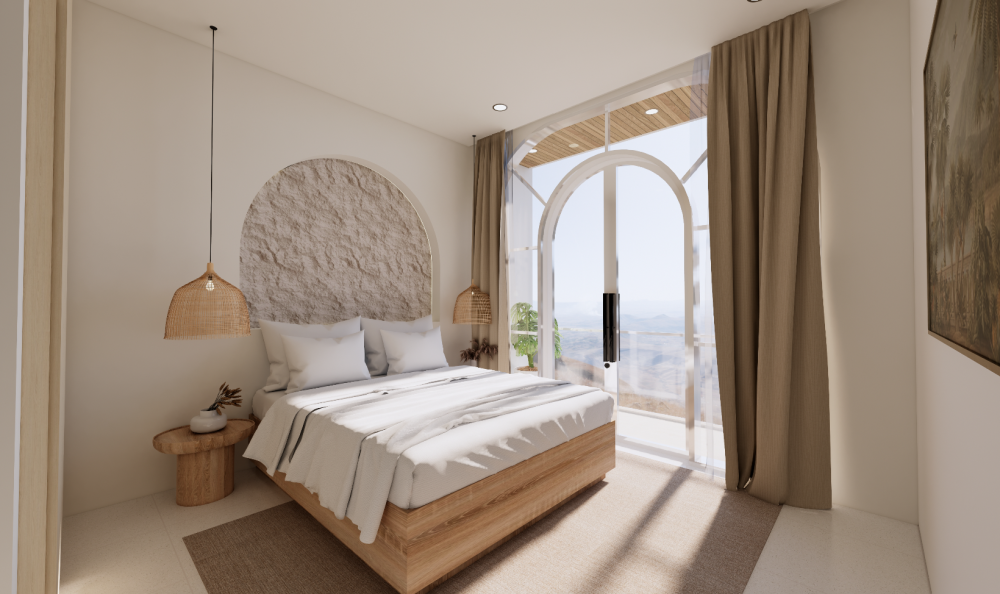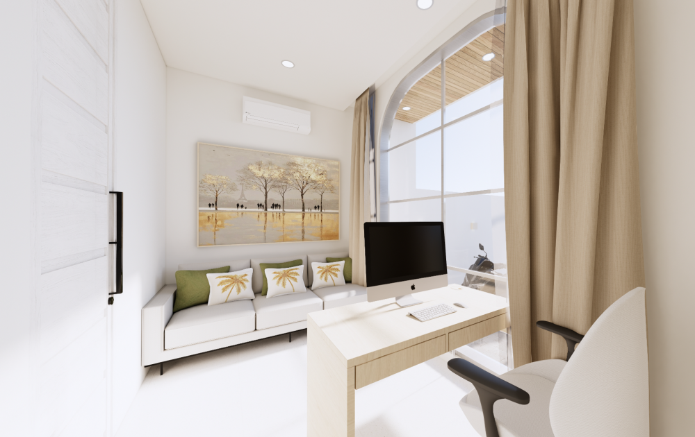 Vila je navrhnutá v teplých krémových tónoch s oblými líniami a svetlými otvorenými interiérmi, ktoré spájajú eleganciu s funkčnosťou. Zapustený obývací priestor a otvorená kuchyňa vytvárajú prirodzené centrum domu, doplnené o samostatnú pracovňu a úložný priestor. Exteriér ponúka súkromný bazén (17 m²), tropickú zeleň a zapustenú chill-out zónu — ideálne miesto na oddych, stretnutia aj každodenný život na Bali.