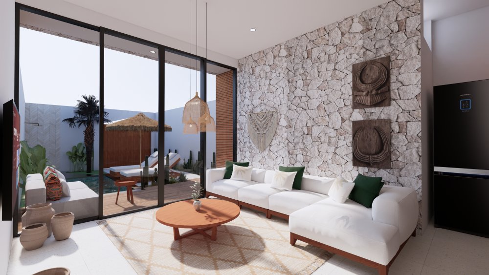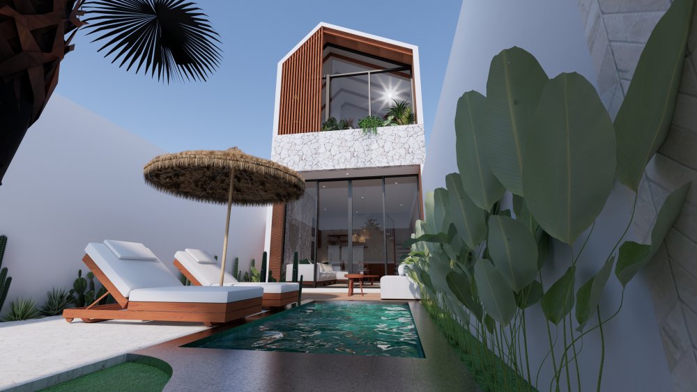 Táto krásna 2-spálňová vila spája tropický dizajn s kvalitnou výstavbou a potenciálom okamžitého výnosu. Vďaka pevnej konštrukcii a zosilneným základom je postavená s dôrazom na odolnosť a dlhú životnosť. Použité sú prémiové materiály — prírodný kameň, drevené prvky, odolné podlahy, kvalitné stolárske spracovanie a nadštandardné povrchové úpravy — ktoré minimalizujú údržbu a zabezpečujú dlhodobú hodnotu aj v podmienkach Bali.