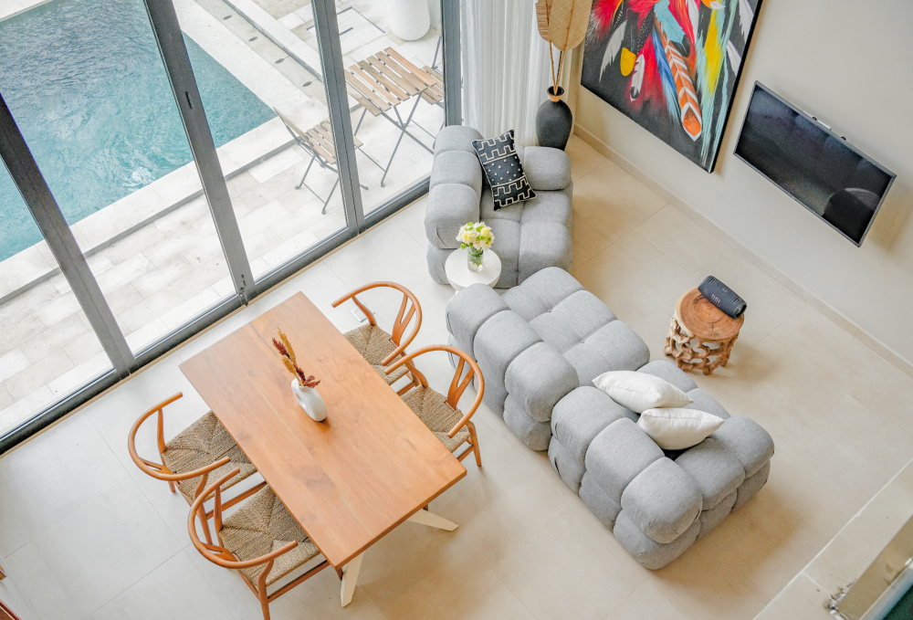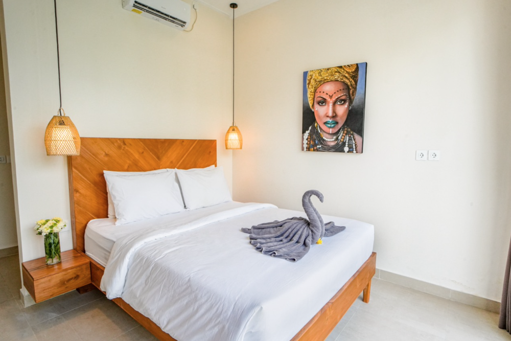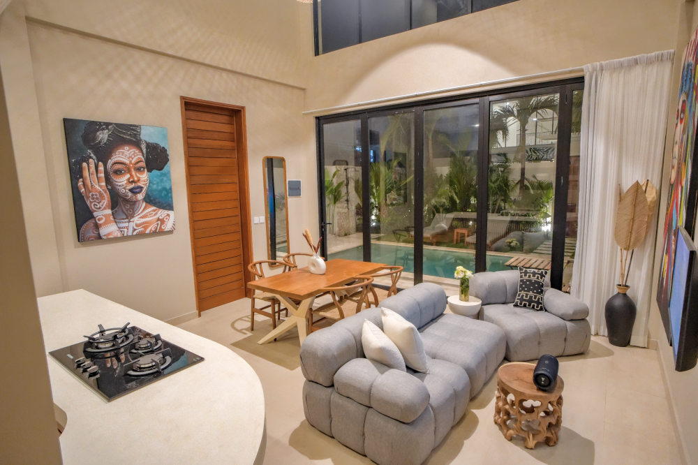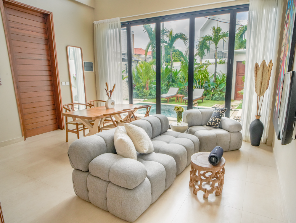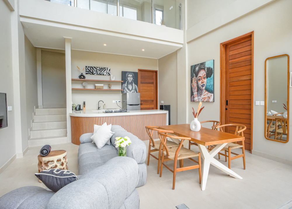 Kvalitná výstavba zaručuje dlhodobú odolnosť, pričom vila disponuje dvoma spálňami s vlastnou kúpeľňou, hosťovskou toaletou a samostatným úložným priestorom. Prírodné materiály, vzdušné priestory, moderné zariadenie a lokálne remeselné prvky vytvárajú príjemnú atmosféru v štýle Bali — ideálnu pre bývanie aj dlhodobý prenájom.